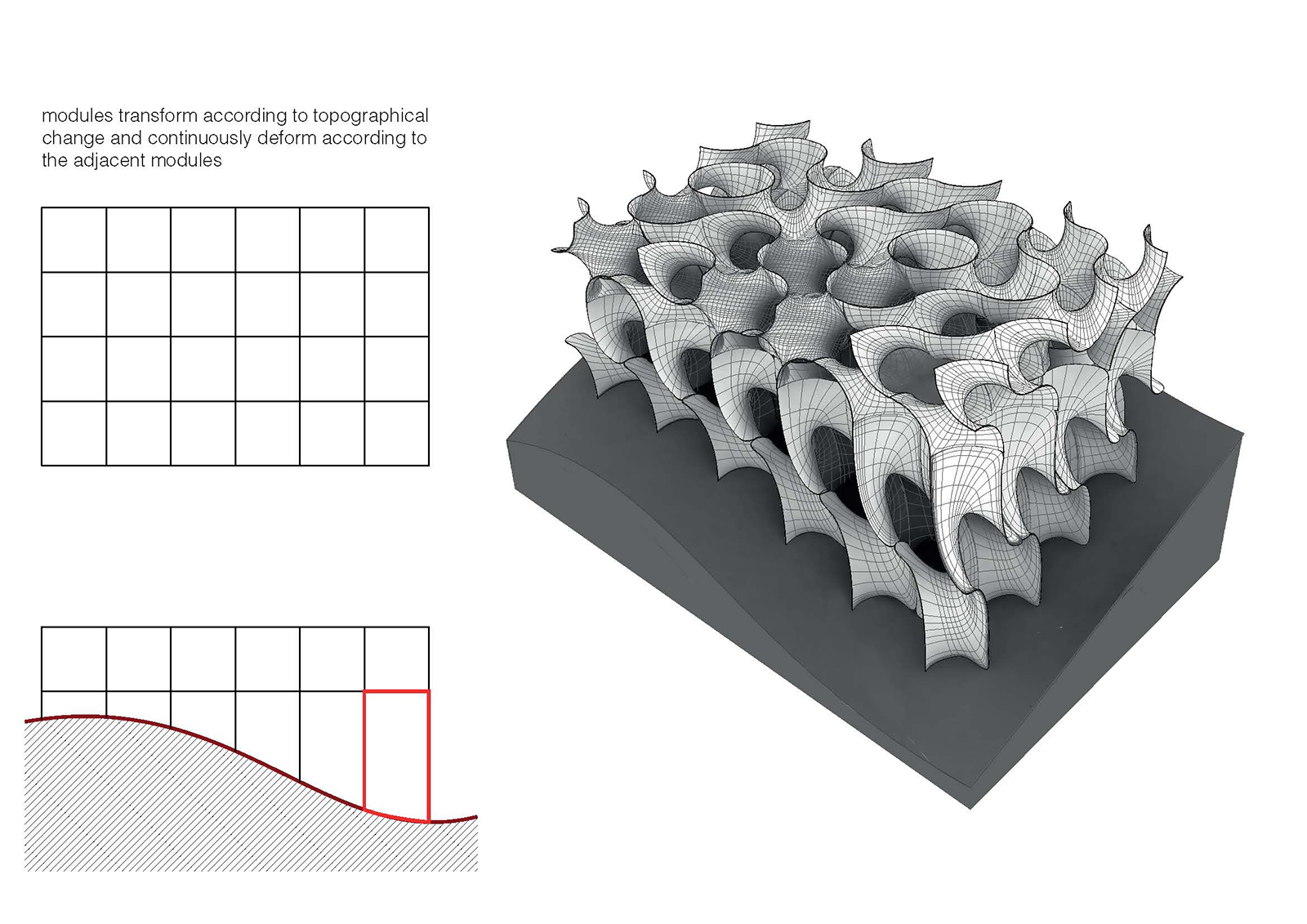 The studio will pursue Groovy Tectonics, through design methods which emphasise an associative logic towards the organisation and intensity of movement and programmes related to topography. The issues and contingencies include programming earlier spatial and structural models within a topographical approach to urbanism, interconnected from coast to summit. Bringing forward the tools, concepts and preliminary results, the brief calls for a series of public, civic and tourist programmes in a series of pavilions.