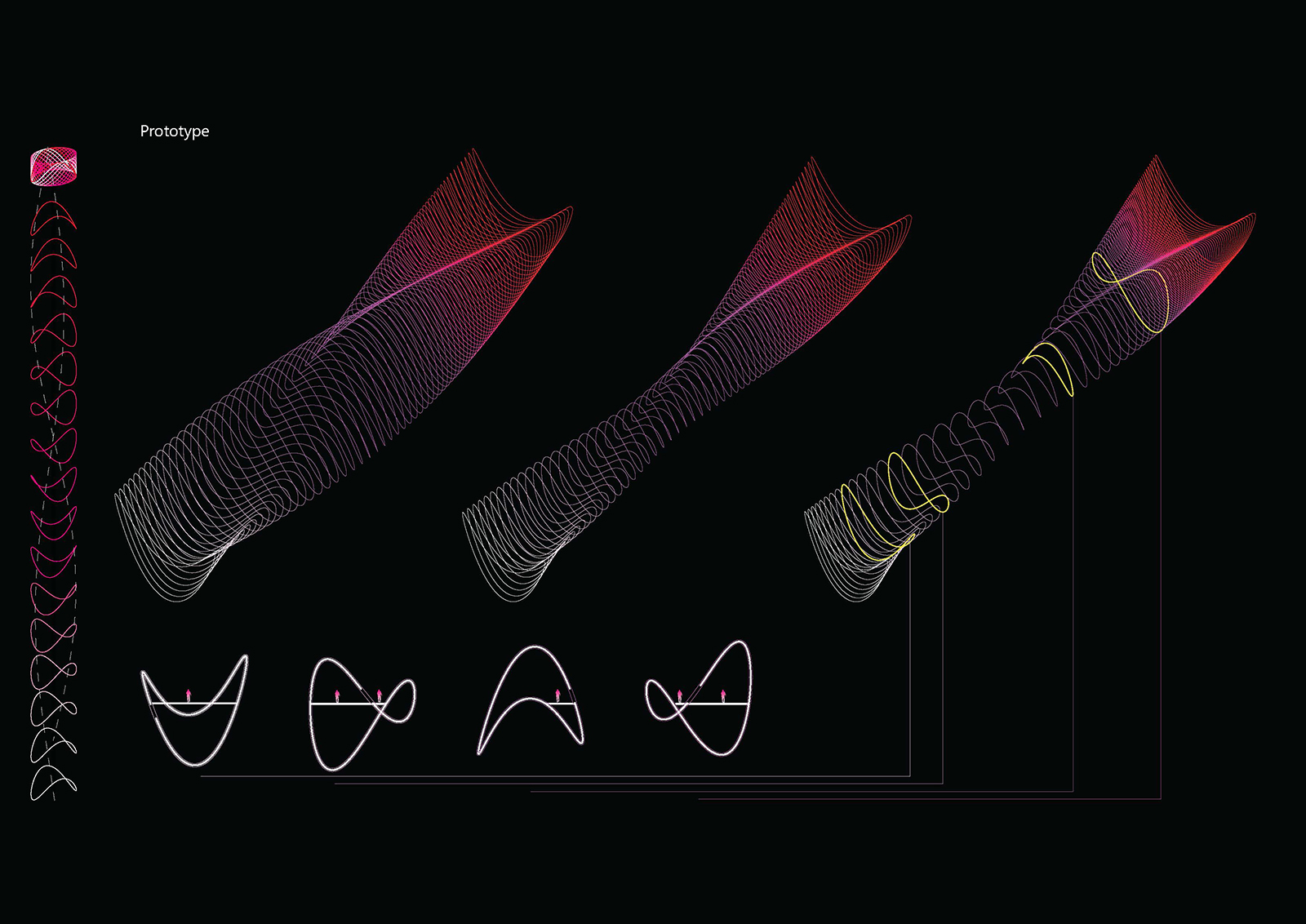 ‘Groovy Tectonics’ (HKU | March I studio | Fall 2013) was led by Tom Verebes with Paul Wintour as the Teaching Assistant. With curvature as the central theme, the studio initially researched a set of mathematical concepts and tools, for their potential to breed innovative architectural spatialities. From simple spatial principles, generated computationally as abstract, yet controllable geometric constructs, students migrated from abstraction towards increasingly concrete architectural implications of the initial inter-disciplinary relations between mathematics and space.