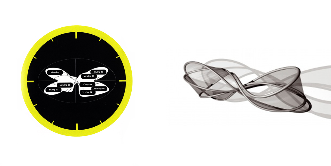 Relatively few diagrams were produced by UN Studio, FORM and NOX, yet those which were produced all possessed topological qualities. These topological diagrams can be considered to define spatial qualities rather than the procedural qualities promoted by Deleuze and Guattari: ‘The diagram is the possibility of fact – it’s not the fact itself.’ (Deleuze in Somol, 1999, p.23). For example, UN Studio’s self-defined ‘mathematical model’ (Bos & van Berkle, 2006) clearly shows three variations of a topological diagram: The Möbius strip; the Klein bottle; and, the Trefoil. These topological diagrams become design models which they argue offers fully informed design concepts (Bos & van Berkle, 2006, p. 17).
