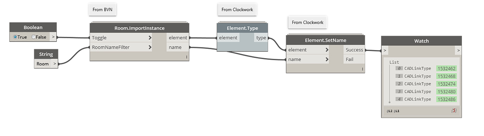 By adding an ‘Element.SetName’ node, the import instances can be re-named based on the room number it was derived from, e.g. 1.01. Note that regardless of how the area schemes are set (Architecture > Room & Area > Area & Volume Computations) – by wall face, finished face, etc. – the resulting geometry will be the internalised volume, subtracting walls and floors. Since the name of each mass is associated with the room name from which it originated, various analysis can be performed of the mass, and the results pushed back into Revit via Dynamo and Excel. This process is particularly useful when using Grasshopper and Ladybug to run environmental of the Revit model.