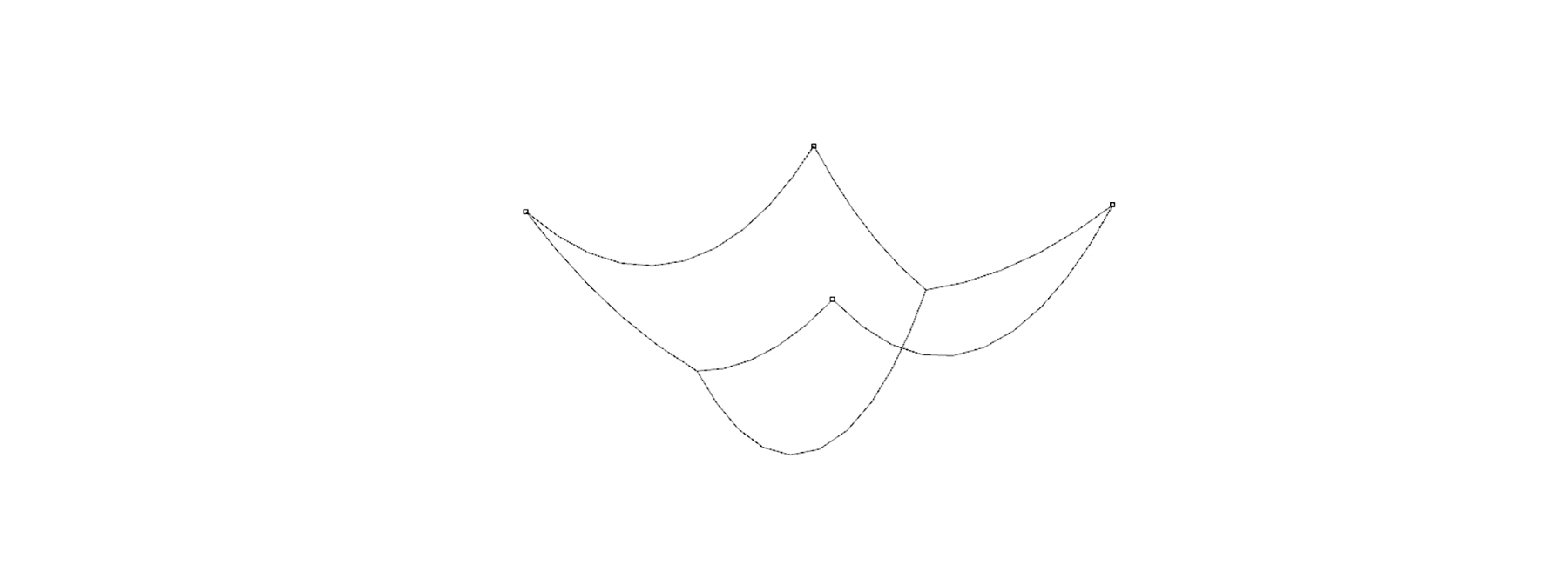 It is also possible to create nested catenary structures. This process entails hosting the anchor points of one chain to another chain. By default, Kangaroo joins overlapping control points. Therefore, to prevent the curve network from separating during the animation, ensure that that the start and endpoints of the nested catenary curve rest on the division points of the primary catenary.