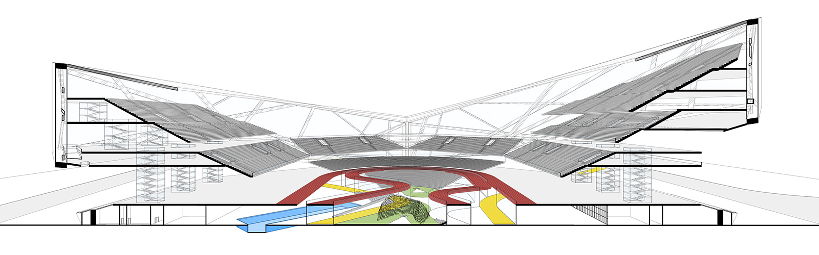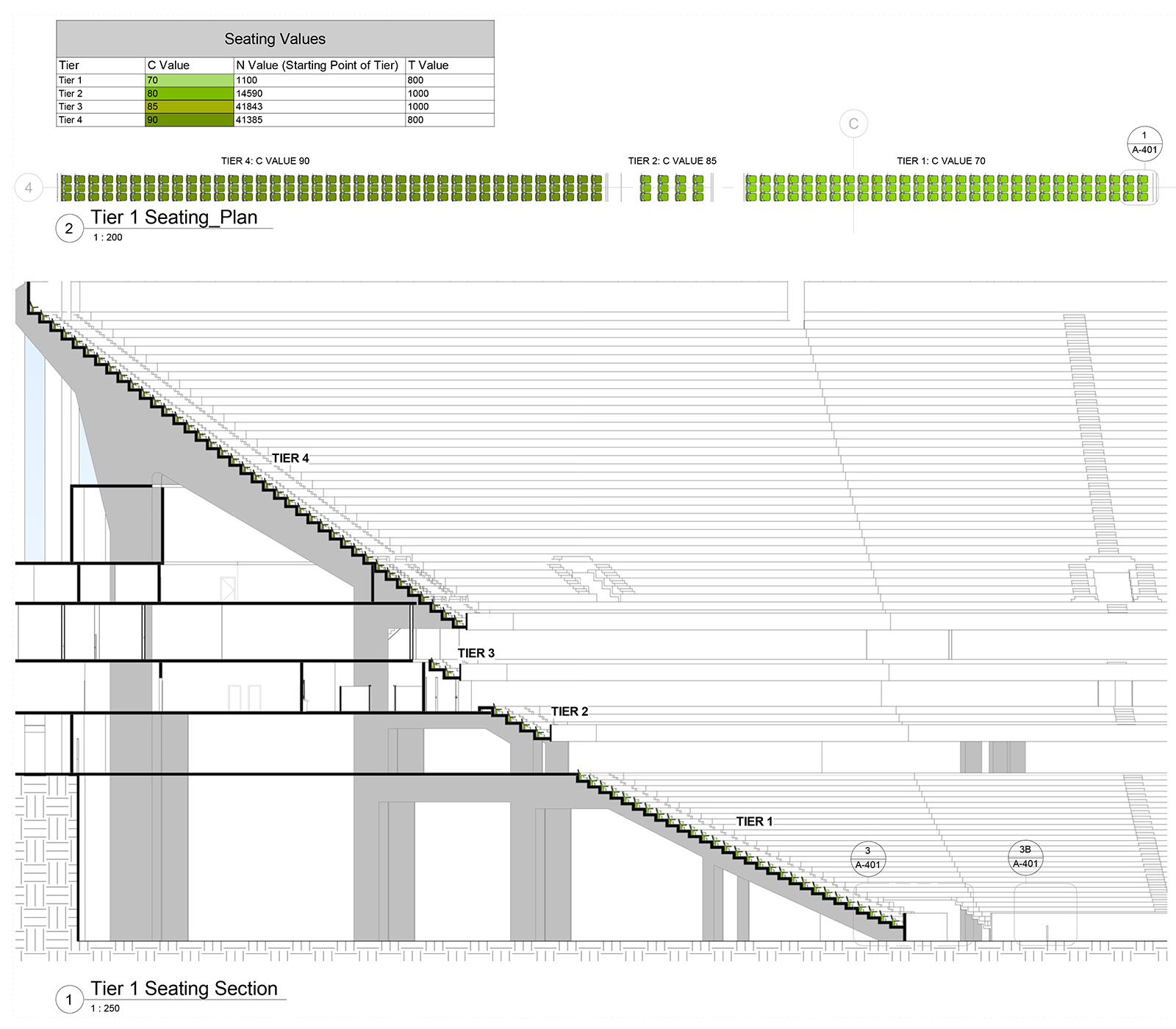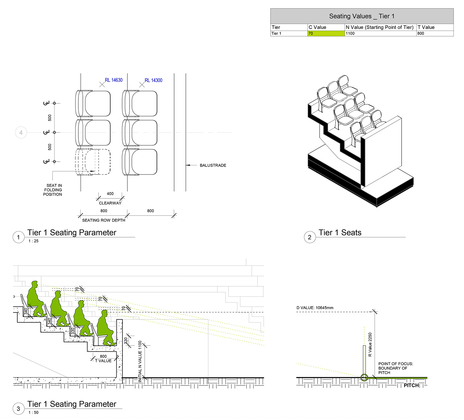 In addition to a standard drawing sets as the main deliverable, special emphasis was placed on advanced representation techniques of both geometry and data. To represent geometry, students were encouraged to produce 3D sectional views, exploded axonometrics and renders. In order to visualise data, students were asked to produce a series of schedules and coloured plans. These views highlighted various parameters in the BIM database. For example, quality of views, distance from pitch, value of seat, etc. Through the generation of these specialised workflows, students gained an understanding of rule-based design, data management, analysis and optimisation.