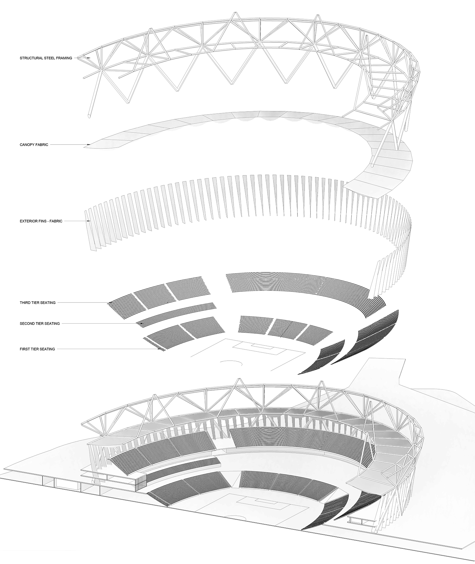Students were asked to form teams of three and research stadia design in order to identify a series of rule-based constraints, including: