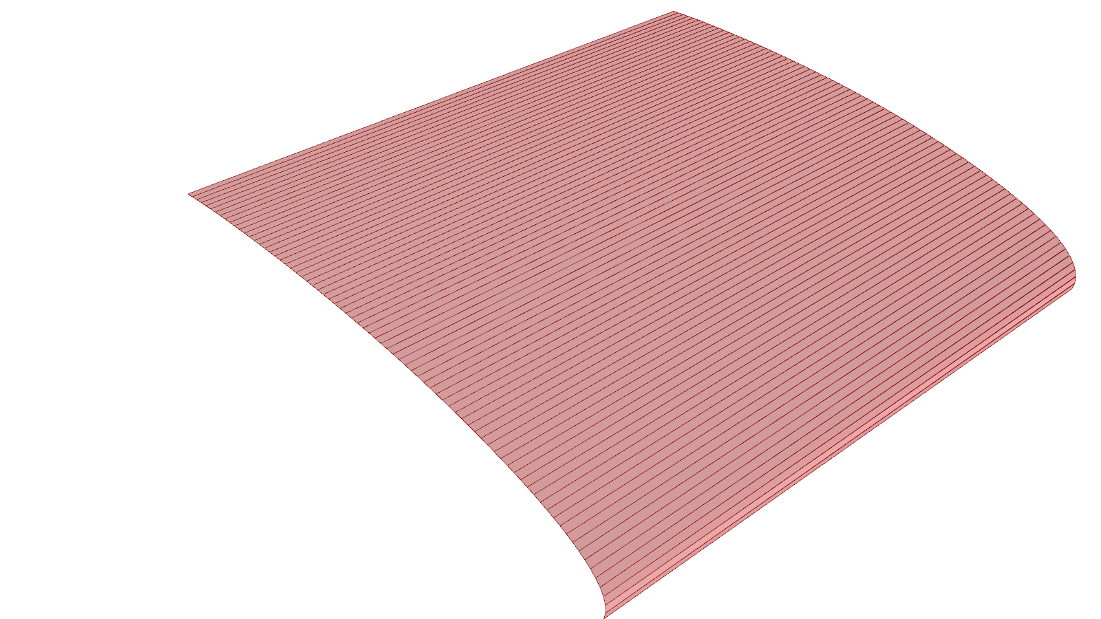 Grasshopper was then used to divides the surface with UV divisions. Since the concourse tapered in plan, the divisions were calculated from the shortest length and based on critical dimension (batten width and min spacing, etc.). The centre lines were then offset to accommodate batten spacing.
