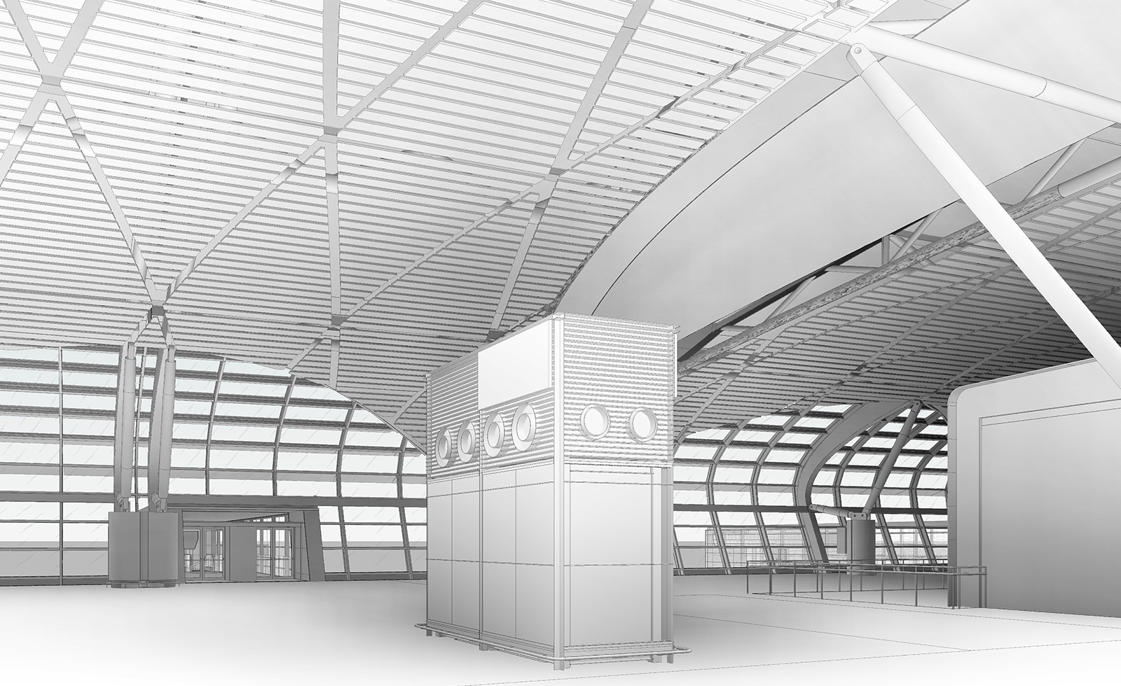 The above method was very successful, albeit a little time-consuming. In all, there were approximately 13,000 individual battens for half the concourse. Rather than creating the entire ceiling, only half was created, and then when linked into the main model, it was copied and mirrored to minimise the computational load.