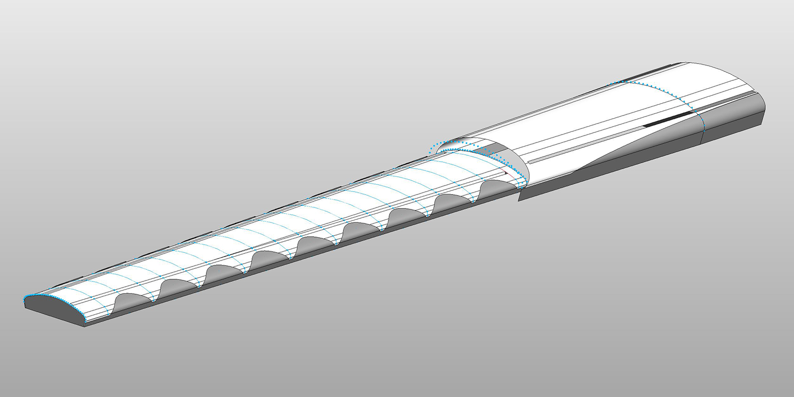 A series of void extrusions to subtract away various zones including window, gutters and transition zones.