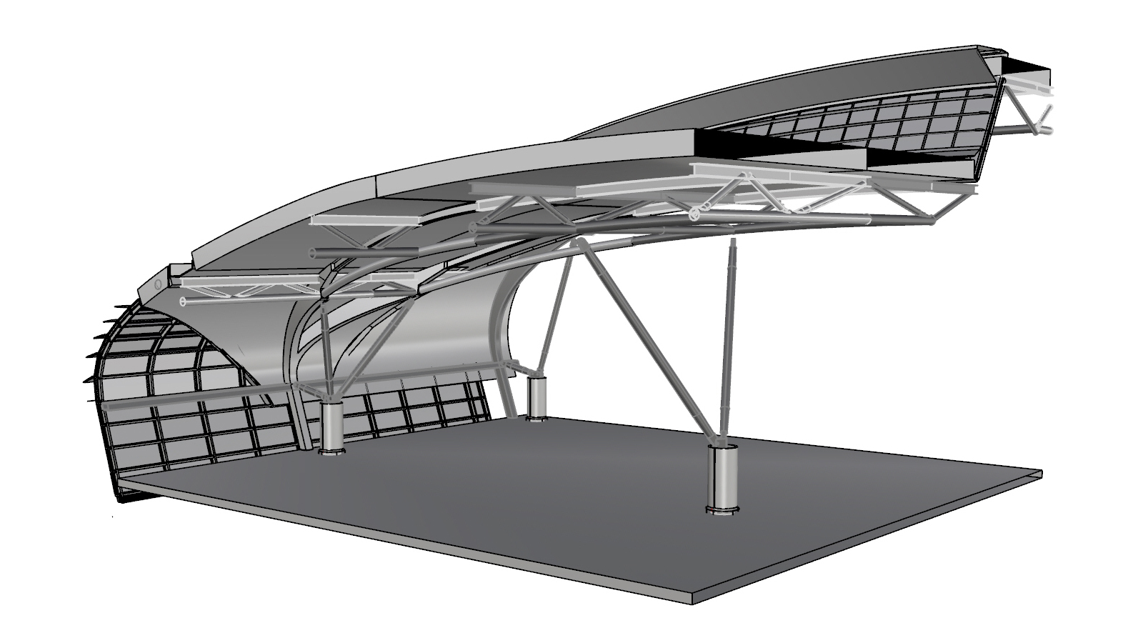 - The overall shell massing which would form the basis of the roof, glazing and skylights; and