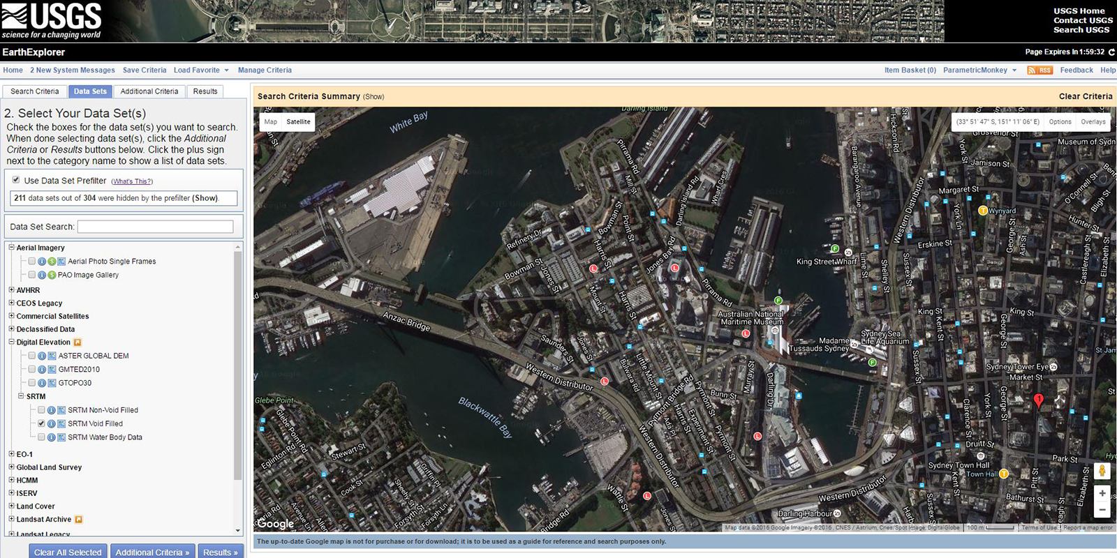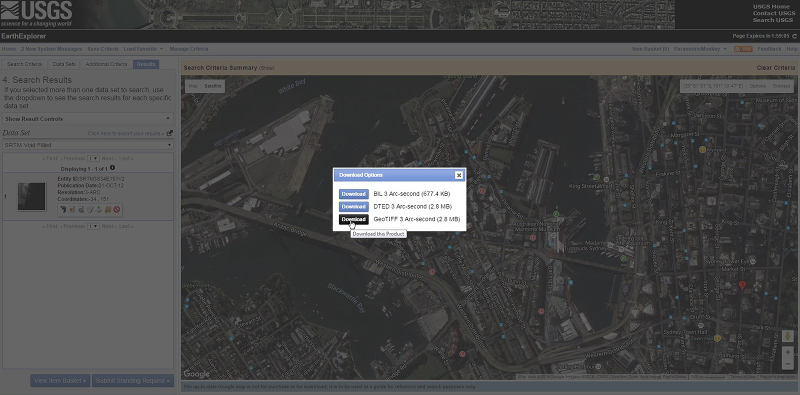 *GeoTIFF files at a resolution of 1 or 3 arc seconds. GeoTIFF files are available for 1 and 3 arc second resolutions for most of the earth and can be downloaded from the USGS Earth Explorer. This option is the best for data in Australia. When selecting your data sets, choose Digital Elevations > SRTM > SRTM Void Filled.