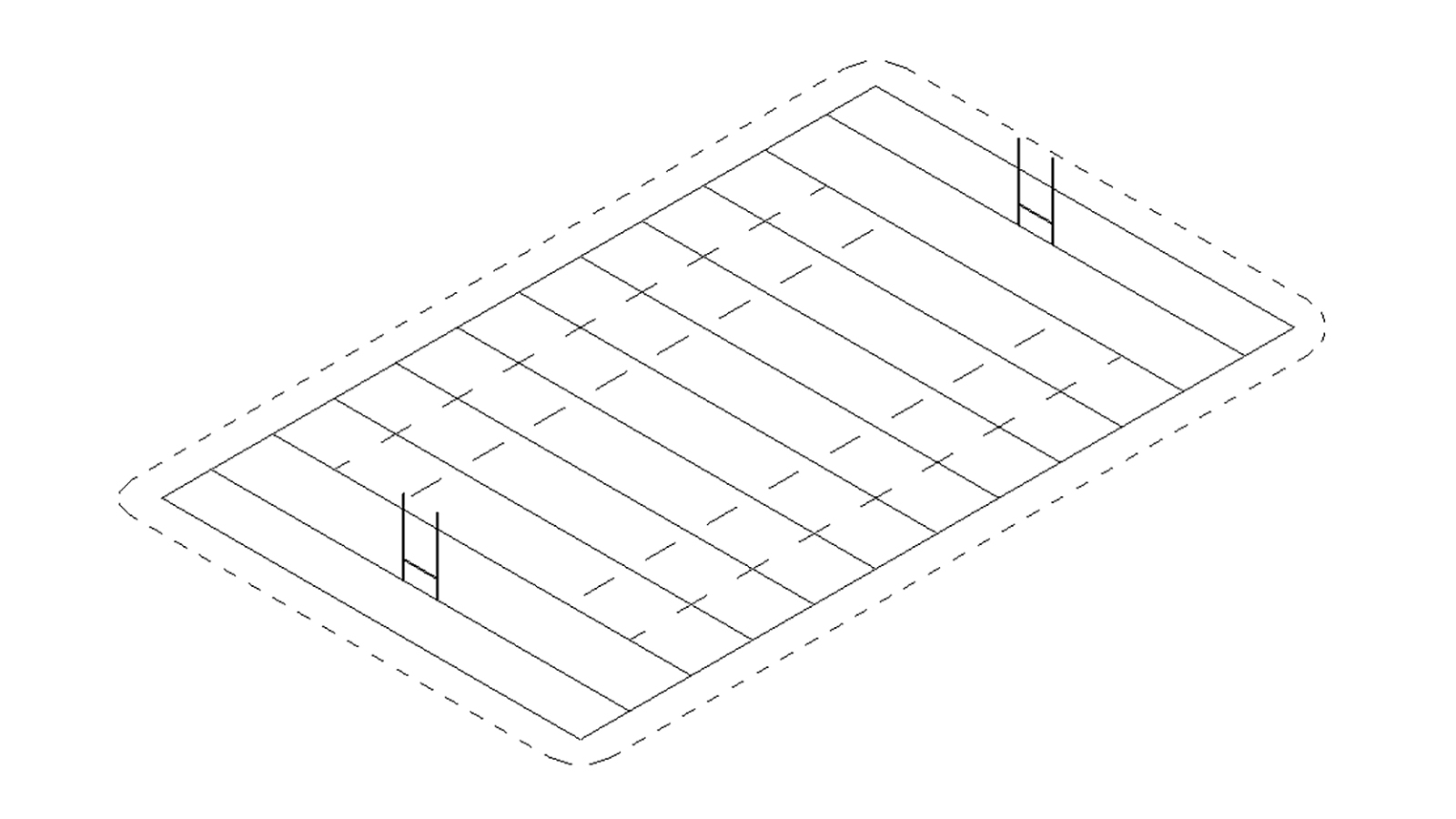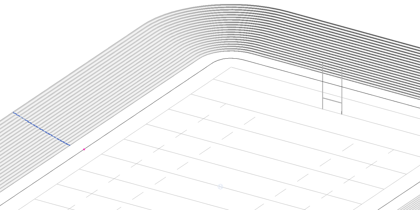 The first step is to draw your playing field. Depending on the type of Stadium you are designing, this might be purpose-built, e.g. football only, or multi-purpose. I would recommend using a generic model family with model lines so that it will be visible in 3D. There is no need to parameterise the family as the pitch is unlikely to need to flex. The exception to this would be if the pitch were to be multi-purpose, in which case it is best to create separate generic model families for each type, and the nest these into a parent family and use the visibility parameter for graphic control.