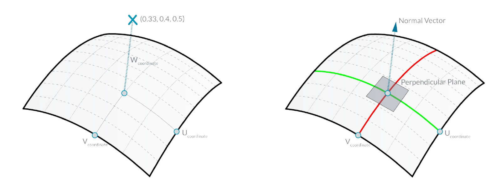 You can think of NURBS surfaces as a grid of NURBS curves that go in two directions. The shape of a NURBS surface is defined by a number of control points and the degree of that surface in the u and v directions. NURBS surfaces are efficient for storing and representing free-form surfaces with a high degree of accuracy.