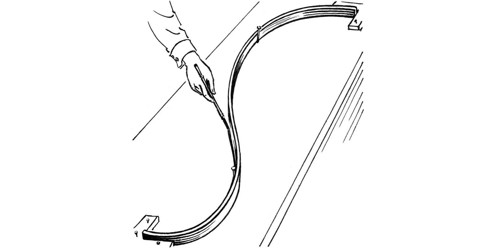 The term derives from the technical lexicon of shipbuilding, where it describes slats of woods that were bent and nailed to the timber frame of the hull. A spline is thus the smoothest line joining a number of fixed points.
