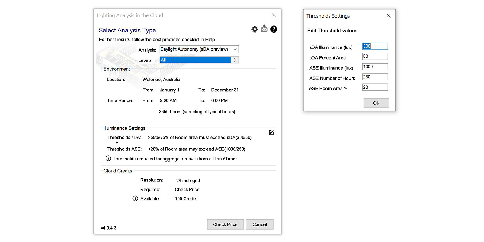 The other major downside to Insight is the cost. The default cost for cloud credits in Australia is $150/100 credits. For a model with 200 apartments, a single run may cost 200+ credits, the equivalent of over A$300. Given that most analyses will need to be run multiple times due to design changes, the costs can quickly add up. If you are a part of a large organisation and have access to cheaper cloud credits, than the price might play less of a factor in your decision to adopt Insight. But ultimately, I still recommend using Grasshopper and Ladybug for all solar access analysis as it is quicker, more economical and most importantly, more accurate.