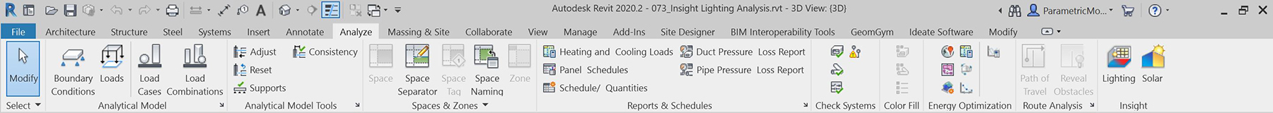 Firstly you’ll need to download and install the Insight plug-in for Revit. Currently, it is available for Revit 2016-2020. Once installed, it will appear under your Analyze Tab.