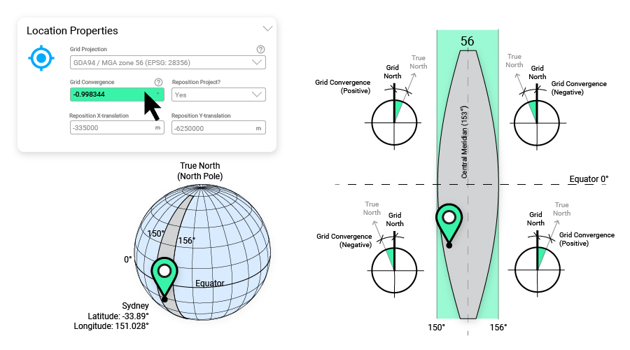 Similarly, where variables need to be set on a project-by-project basis, we’ve pre-populate associated fields with the most common value. For example, once the Project Location is set, the Grid Projection and Grid Convergence default value are also automatically set. Of course, these values can be overridden by the user, but they provide a default if the user doesn’t know otherwise.