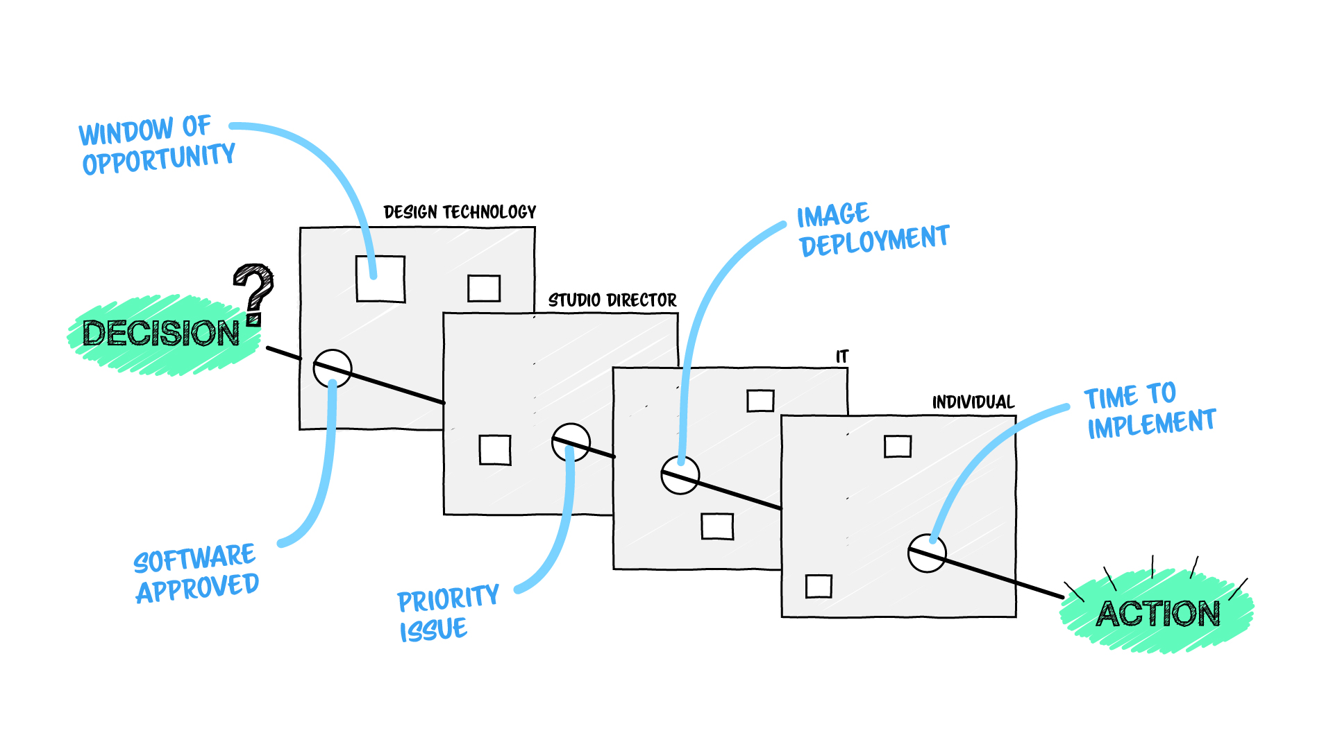 Eventually, the war of attrition is over, and the software is finally deployed. But everyone in the process is exhausted and somewhat bitter about the outcome. The end-user is so frustrated that they don’t even care anymore. The Design Technology team is annoyed that the decision went over their heads. The IT team is annoyed that they got pulled off from their current project. And the studio director is annoyed at how slow it took to resolve a simple issue. Much like a moon landing, all the stars needed to align just to make it happen. But no one questions the process – that is just how we’ve always done it
